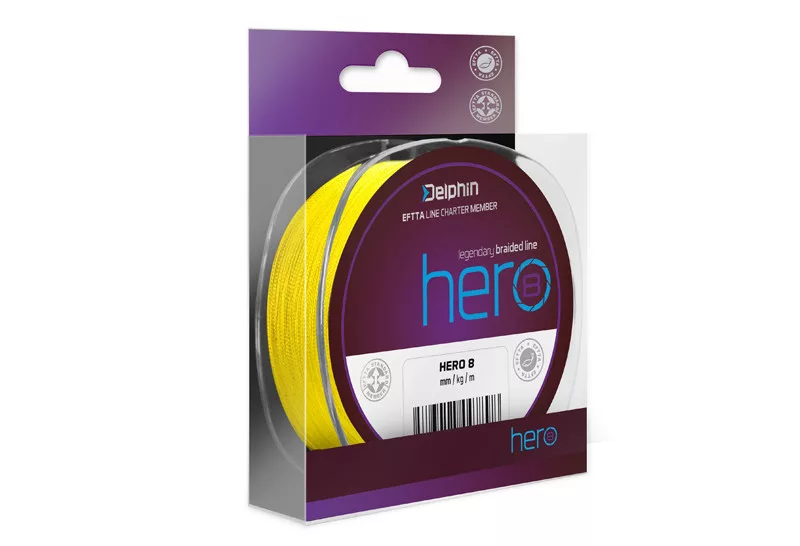 Delphin HERO 8 je pouzdan struna po izvrsnoj cijeni, izrađena sustavnim pletenjem 8. PE mikro vlakana. Kao rezultat toga, dobiva se izvrsna nosivost, gotovo nula istezanja i mnogo finija površina u usporedbi s 4-nitnim strunama. Osim toga, struna je površinski obrađena, što eliminira apsorpciju vode. Zahvaljujući širokom rasponu ponuđenih promjera i nosivosti, Delphin HERO 8 je pogodan za izradu predveza u većini ribolovnih tehnika.