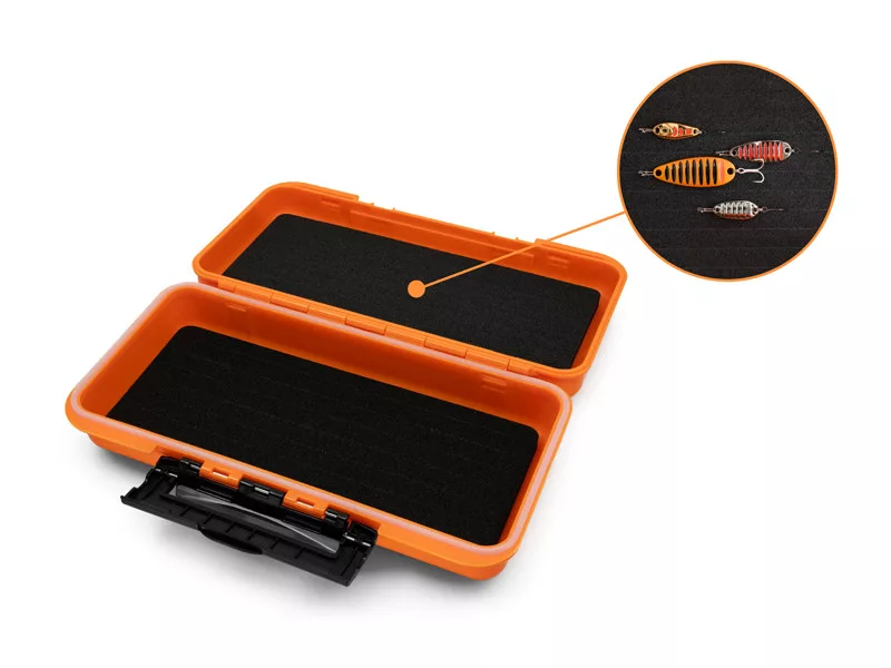 LureBOX QUICK je kompaktna vodootporna kutija za pohranu varalica. Unutrašnjost sadrži EVA pjenastu oblogu. U pjeni se nalaze utori, pomoću kojih se plastične varalice opremljene jig-udicama mogu lako učvrstiti. Jednostavno utisnite udicu u urez, mamac ostaje neoštećen, a pjena štiti oštrice udica od otupljivanja. Kutija se može koristiti i kao mjesto za pohranu TWISTO sustava, a da se ne zapetljaju. Također možete pohraniti odvojene udice u nju, tako da su uvijek pri ruci kada vam zatrebaju. Izrađena je od narančaste, neprozirne plastike kako bi se smanjio rizik od korozije prilikom vraćanja korištenog pribora u kutiju. Osim toga, s vanjske strane ima praktične plastične kopče i opremljena je brtvom za odbijanje vlage. Dimenzije su 210x120x50 mm