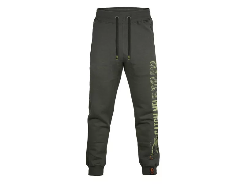 Trenirka donji dio Catch me CARP NX ukrašena je na lijevoj strani privlačnom grafikom na kojoj je ispisan tekst 'CATCH ME IF YOU CAN', a ispod je prikazan šaran koji se hrani. U kombinaciji s odgovarajućom duksericom s kapuljačom i majicom, stvara moderan outfit u kojem ćete se izuzetno dobro osjećati uz vodu.