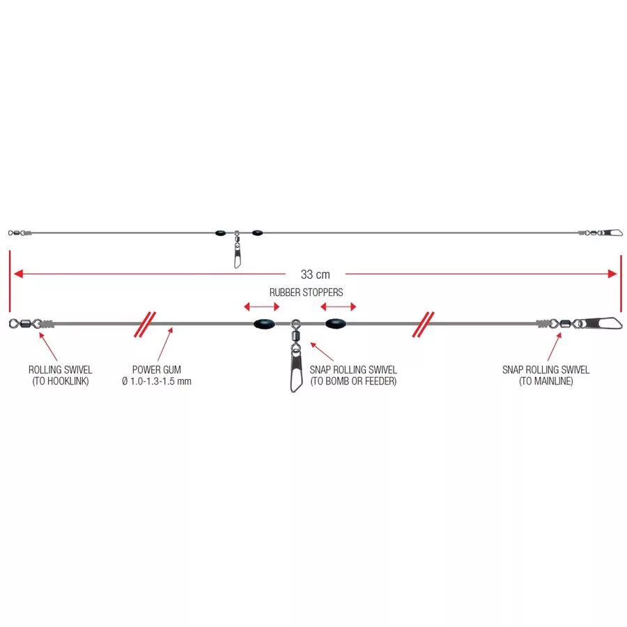 Sadržaj pakiranja: Trabucco Power Gum/Slider Rig 1,5mm Feeder Montaža 2 kom