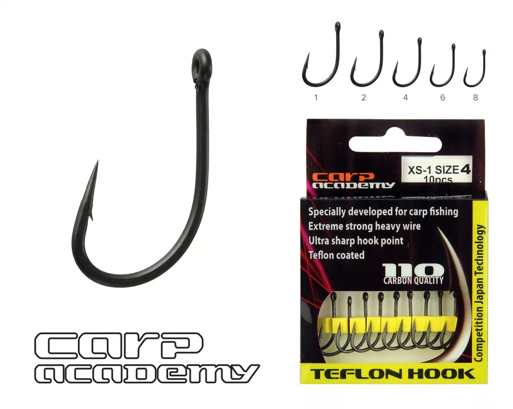 Carp Academy Teflon Hook XS-1 Crna 2 10kom/pakiranje S ušicom Bodljikava Bojli udica