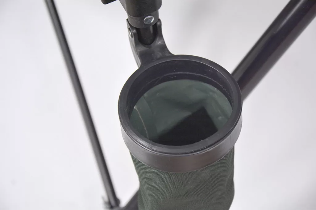 Sjedalo široko 53 cm i ergonomski dizajniran naslon visine 101 cm osiguravaju udoban položaj tijela, čak i tijekom cjelodnevnog ribolova. Visina sjedala od 45 cm omogućuje lako ustajanje i sjedenje, što može biti posebno korisno u situacijama koje zahtijevaju brzu reakciju. Ugrađeni držač za čaše je praktičan dodatak koji odmor i čekanje čini ugodnijim.