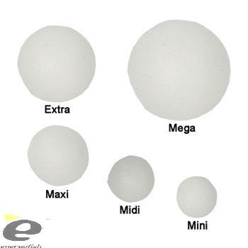 Izbor veličina:Mini: za ribolov deverike, za sendvič od crvića,Midi: za ribolov šarana, amura (tj. bijelog amura), za ribolov na dnu,Maxi: za boili ribolov, amura (tj. bijelog amura), za plutanje male ribe,Extra: za ribolov soma, za ribolov na dnu s krvnom tabletom.Izbor okusa:natur, vanilija, anis, šaranMix, deverika, med, jagoda, amur, školjkaBojana, mega verzija je izvrsno pogodna npr. za plutanje boila.