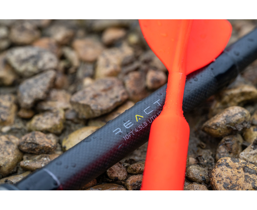 Štapovi iz serije REACT, 2-dijelni od 3 metra, zbog svojih pomno razrađenih karakteristika svrstavaju se u premium štapove, preporučeni prvenstveno ljubiteljima kraćih štapova za šaranski ribolov. Lagan i osjetljiv štap s parabolom od 1k0s karbonskog tkanja ističe se u borbi na blizu i u ribolovu iz čamca. Osim za bliske primjene i ribolov iz čamca, oba su modela dizajnirana da zadovolje zahtjeve preciznog bacanja.