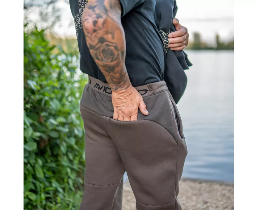 Avid Compound Joggers donji dio trenirke idealan je za nošenje na mjestu ribolova, jer dobro izolira, a ipak je dovoljno prozračan. Njegova elastičnost i kroj omogućuju slobodno kretanje čak i tijekom aktivnijeg ribolova, dok džepovi s patentnim zatvaračem nude sigurno spremište. Dizajn koji se sužava na gležnjevima posebno je praktičan u blatnjavim ili vlažnim okruženjima, jer ne povlači prljavštinu sa sobom.