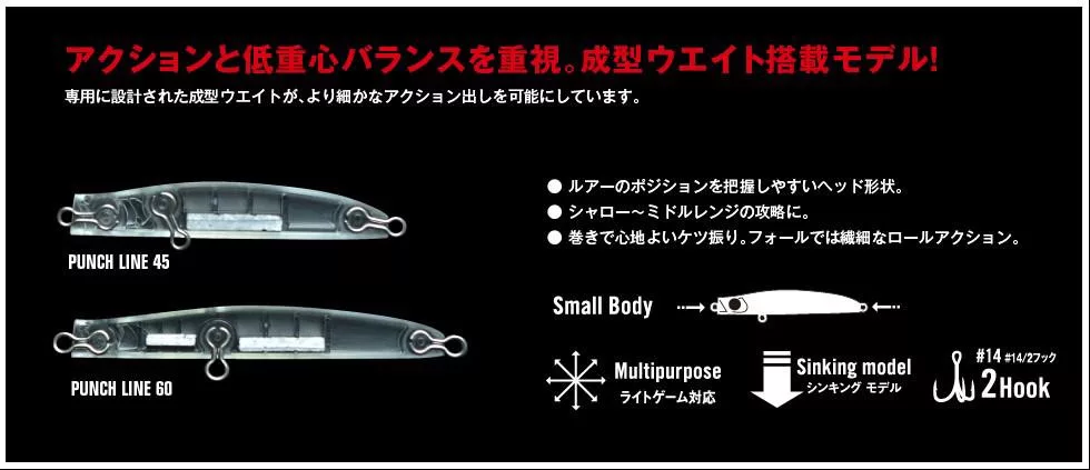 Apia Punch Line 45 je detaljno dizajniran, tonući vobler, koji sa svojom duljinom od 4,5 cm i težinom od samo 3 grama predstavlja savršen izbor za fini ribolov. Varijanta boje 'All Chart' iznimno je živahna i privlačna, učinkovito provocirajući ugrize čak i u mutnoj vodi. Vrhunska Apia marka jamstvo je trajnosti i pouzdanog rada. Veličina udice je 14, što je u idealnom omjeru s veličinom varalice, osiguravajući stabilno kačenje i sigurno držanje ribe. Zahvaljujući svojoj tonućoj karakteristici, lako se može doseći željeni vodeni stupac, pa se ciljano može loviti i na grabežljivce koji se zadržavaju dublje. Bilo da se radi o smuđu, bolenu ili štuki, ovaj vobler vas neće razočarati!