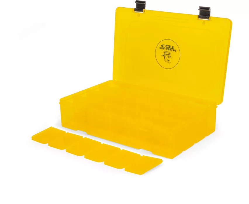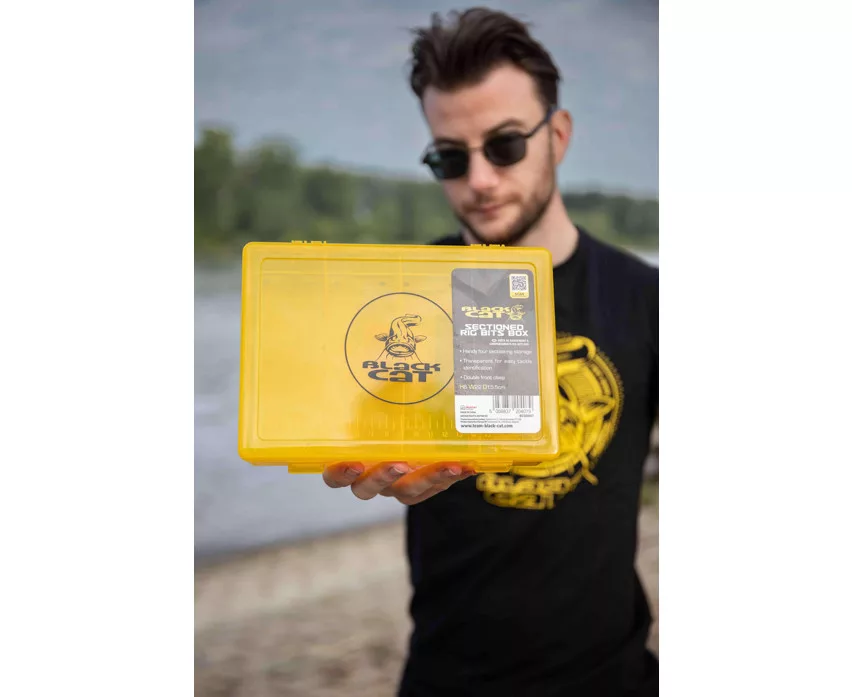 Black Cat Large Rig Bits Box je praktična, prozirna kutija za pribor, posebno dizajnirana za sigurno i organizirano skladištenje ribolovne opreme. Kutija je idealan izbor za svakog ribolovca koji želi pregledno i brzo dostupno smjestiti svoje predveze, sitni pribor, kopče ili druge dodatke.