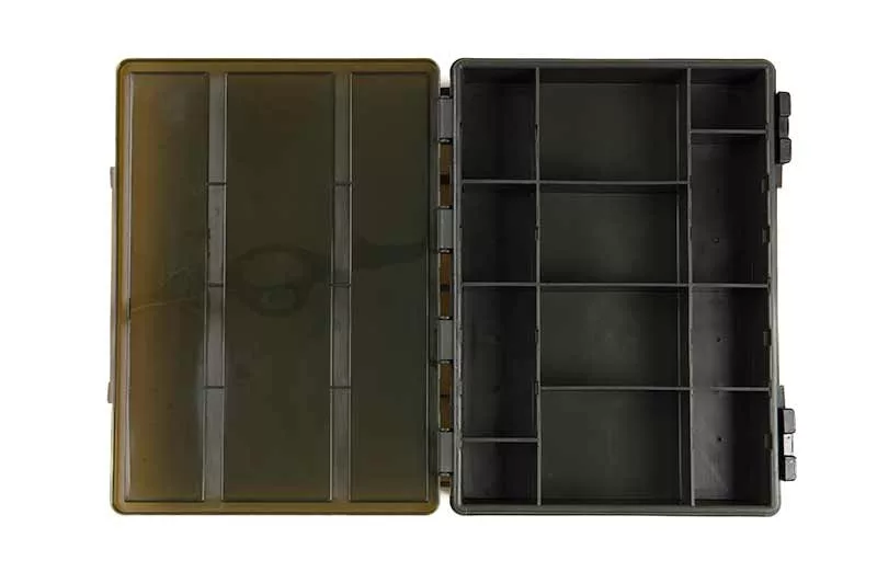 Fox EOS Carp Tackle Box Loaded Large je velika kutija za pribor, dizajnirana na temelju originalnog Fox F-Boxa. Nudi savršenu mogućnost pohrane za sve elemente krajnjeg pribora, bilo da se radi o udicama, virblama, predvezima ili drugim dodacima.