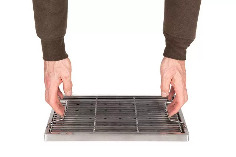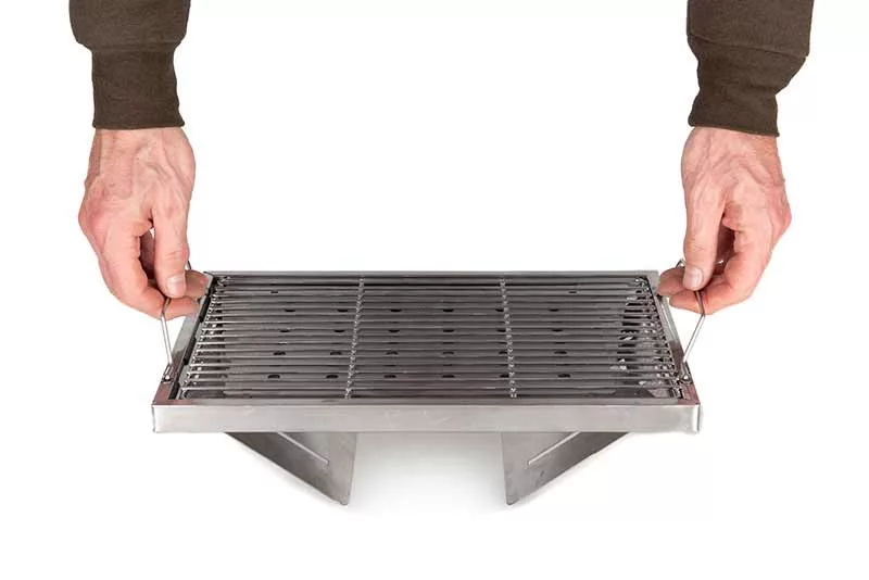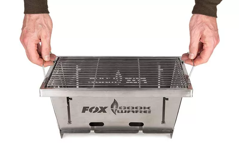 FOX Cookware sklopivi roštilj. Izrada od nehrđajućeg čelika. Izrađen od izdržljivog materijala otpornog na vremenske uvjete. Kompaktan dizajn: Zauzima malo prostora, lako stane među vašu opremu. Sam se rasklapa i stabilno staje na mjesto. Isporučuje se u torbi s patentnim zatvaračem za jednostavan transport.