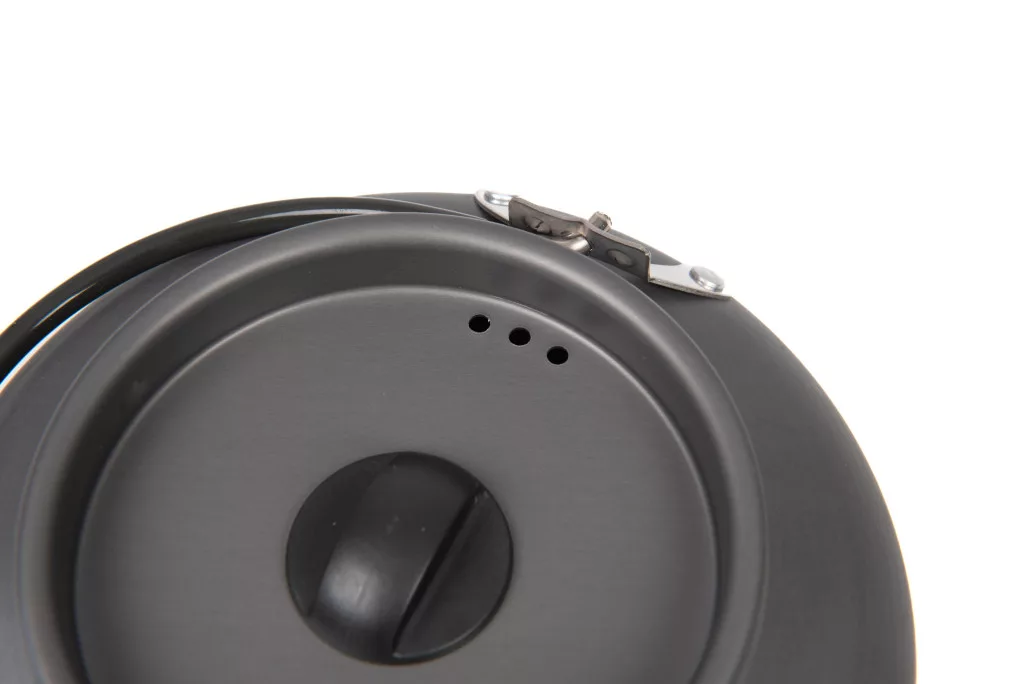 Fox Cookware Heat Transfer kuhalo za vodu je moderno, vanjsko sredstvo dizajnirano za ribolov, kampiranje ili bilo koju aktivnost na otvorenom. Verzija od 0,9 litara je kompaktne veličine, ali pruža dovoljan kapacitet za jednu ili dvije osobe, što je čini savršenim dodatkom za opuštanje uz vodu.