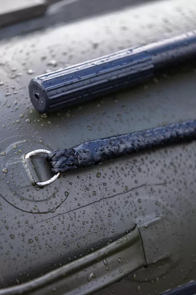 Čamac je izrađen od 0,9 mm debelog, ojačanog PVC materijala, koji nije samo izdržljiv, već se i ističe od tradicionalnih modela svojom jedinstvenom kaki bojom Foxa. Vanjske cijevi promjera 41 cm dodatno povećavaju stabilnost, tako da možete lako manevrirati čak i u vjetrovitim, valovitim uvjetima. Jedinstveni dizajn kraja cijevi i podignuti pramac osiguravaju izvrsne navigacijske karakteristike, što olakšava upravljanje čamcem čak i pri jačem vjetru.