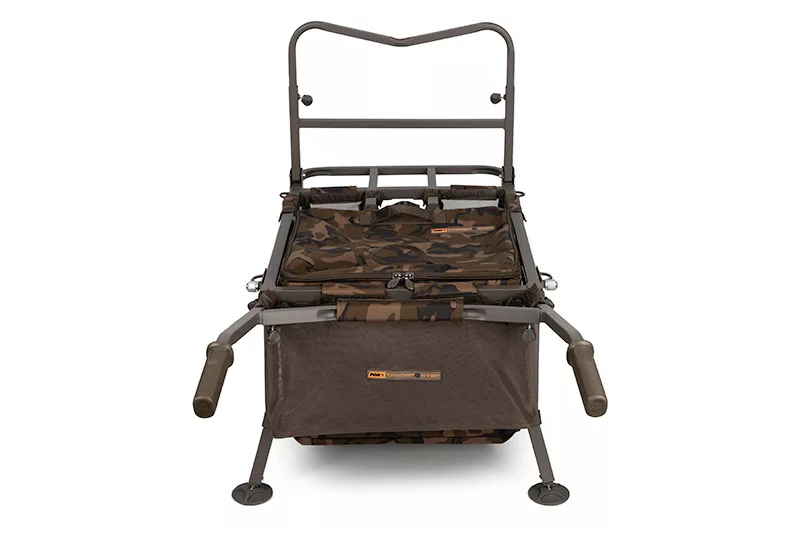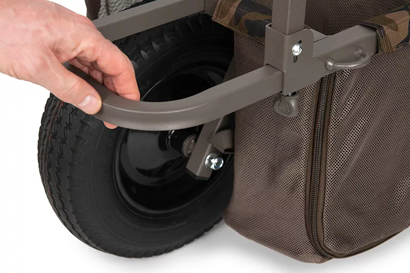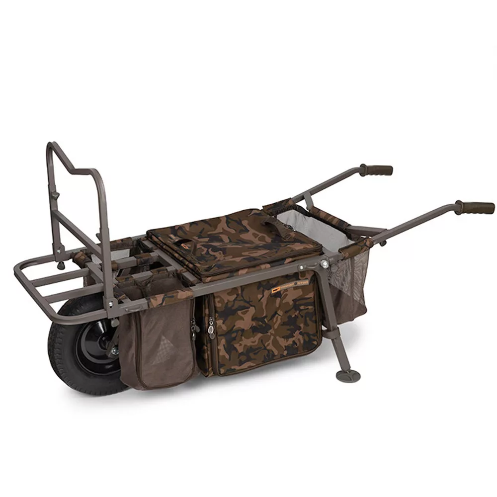 Fox kante od 10 litara koje pripadaju kolicima lako se pričvršćuju, štedeći prostor i optimizirajući težište. Torba Camo Barrow smještena u središtu okvira idealna je za organizaciju opreme. Torba Under Barrow Bag može pohraniti razne Fox Camolite i Aquos torbe, te joj se može pristupiti s obje strane ili odozgo, a da pritom ne morate skidati opremu s kolica. Na obje strane kotača nalaze se dva mrežasta džepa, praktična za pohranu, primjerice, mamaca, boca ili manjih dodataka.