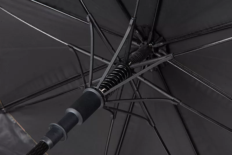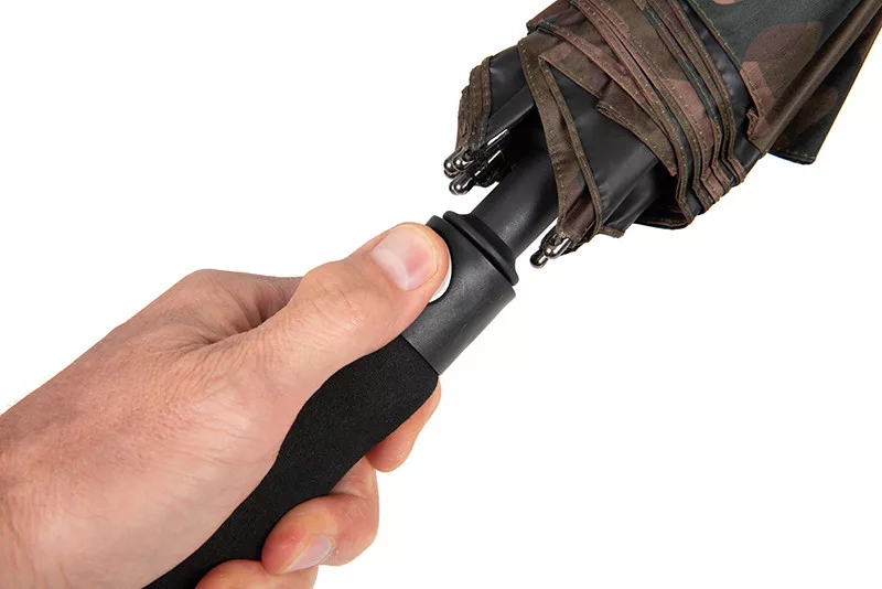 Okvir je izrađen od stakloplastike, koja je lagana, a istovremeno iznimno izdržljiva. Mehanizam za otvaranje jednim dodirom omogućuje brzo i jednostavno postavljanje kišobrana, tako da ribolovac može u trenu stvoriti sigurno sklonište za sebe. Dvostruke trake za pričvršćivanje pružaju dodatnu stabilnost, dok priložena torba za nošenje olakšava transport i skladištenje kišobrana.