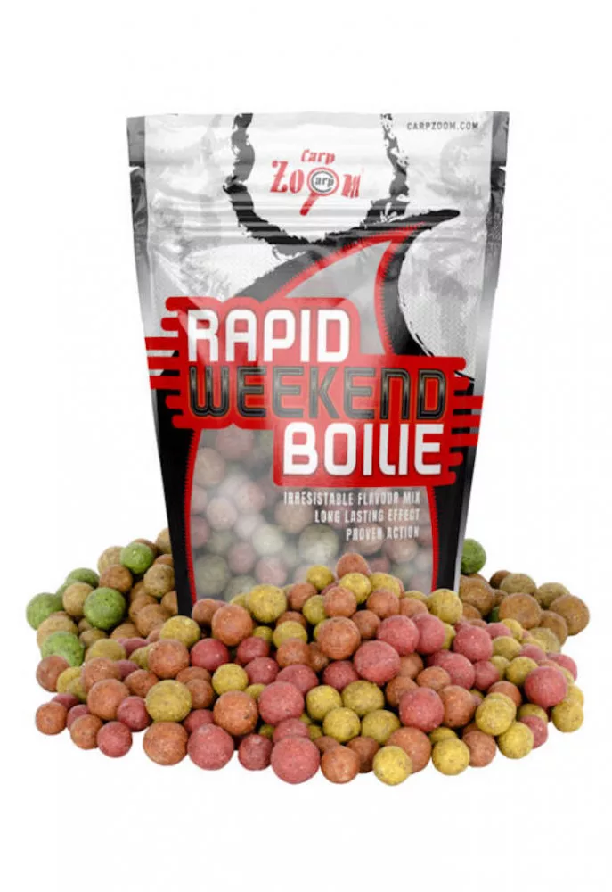 rapid weekend boilies Bojli s brzim djelovanjem. Za hranjenje, ali zbog svoje kvalitete može se koristiti i kao mamac na udici za ribolovce koji provode kraće vrijeme, na primjer vikend, uz vodu, stoga je bojli s brzim djelovanjem neophodan za postizanje uspješnog ribolova. Dostupan je u optimalnom pakiranju od 2,5 kg, po nenadmašnoj cijeni. U jednom pakiranju može se pronaći više okusa i veličina.
