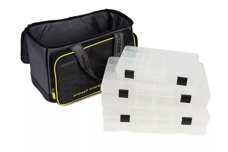 Ova torba je pogodna za transport velikog broja feeder košara ili pribora. Glavni pretinac sadrži dvije velike kutije za hranjenje, a prednji džep sadrži manju kutiju za feeder/dodatke. Torba je izdržljivog dizajna, s predimenzioniranim patentnim zatvaračima, izrađena od poliesterskog materijala otpornog na habanje i s izdržljivim PVC dnom. Torba ima dvije ručke i čičak zatvarač, što je čini lako prenosivom.