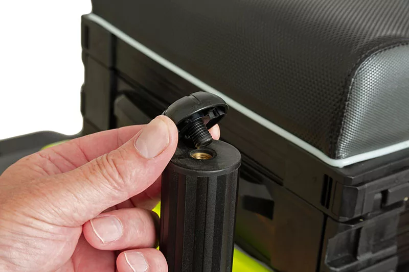 Okvir kutije izrađen je iz jednog komada Hydro formed aluminija, koji je izuzetno izdržljiv i dugotrajan. Ovo rješenje jamči da će izdržati čak i najveća opterećenja, dok ostaje lagan i praktičan. Oslonac za noge dobio je teksturiranu plastičnu oblogu, što ga ne samo čini izdržljivim, već i pomaže u preciznom podešavanju s ugrađenom libelom. Anodizirane, 36 mm produžne noge su protuklizne, a navojni završeci omogućuju pričvršćivanje dodatnog pribora. Redizajnirani držači nogu ne ostavljaju tragove, istovremeno pružajući maksimalnu stabilnost, a jedinice za pohranu s opružnim klinom omogućuju brz i jednostavan pristup opremi.
