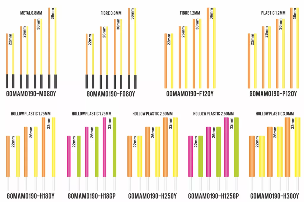 Garbolino Flotteurs Competition Series SP Šuplja plastična antena Set 1,75mm 6kom - Zelena i Ljubičasta u 3 veličine