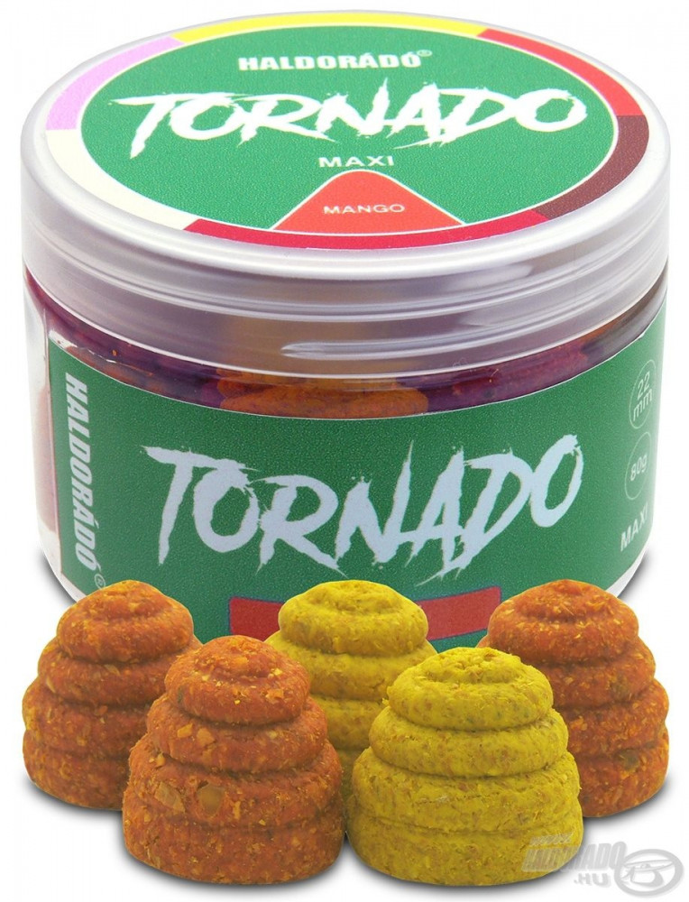TORNADO MAXI je zadržao poseban oblik TORNADO mamaca, ali za razliku od prethodnika, ovo je tonući, topivi mamac. Zbog svoje povećane veličine od 22 mm, optimiziran je za selektivni ribolov velikih šarana, ali može biti rješenje i za fideraše koji love kapitalne ribe, ako treba izdvojiti najveće. Tijekom otapanja neprestano ispušta arome i mirise, čime brzo privlači pažnju riba.