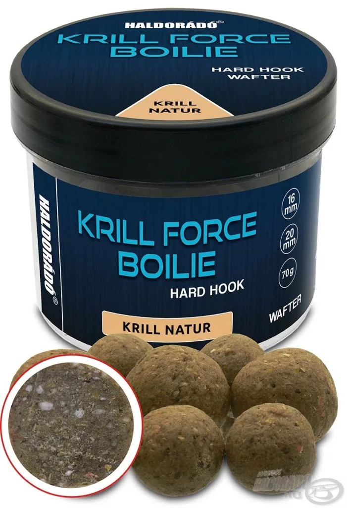 Sadržaj paketa: Haldorádó Krill Force Boilie Hard Hook Wafter 16, 20 mm Krill Natur Bojla za mamčenje 70gr
