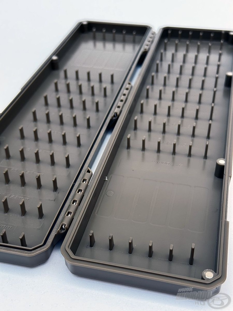 Unutarnji raspored predveza omogućuje pričvršćivanje predveza različitih duljina, a precizno postavljanje pomažu pričvrsne igle i oznake veličine. Poklopac se zatvara s osam snažnih magneta, čime se udice vodootporno štite od hrđe i prljavštine.