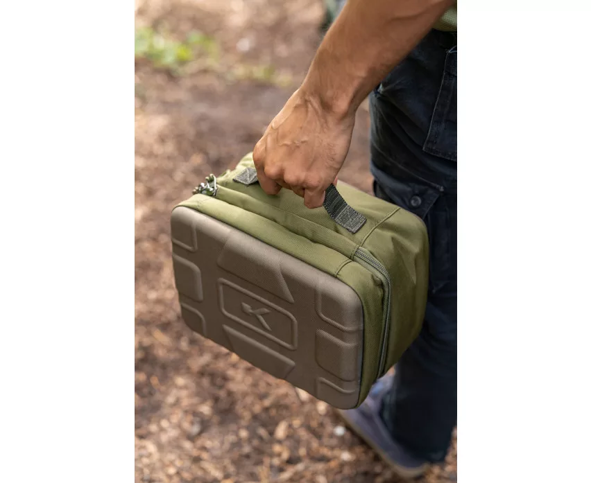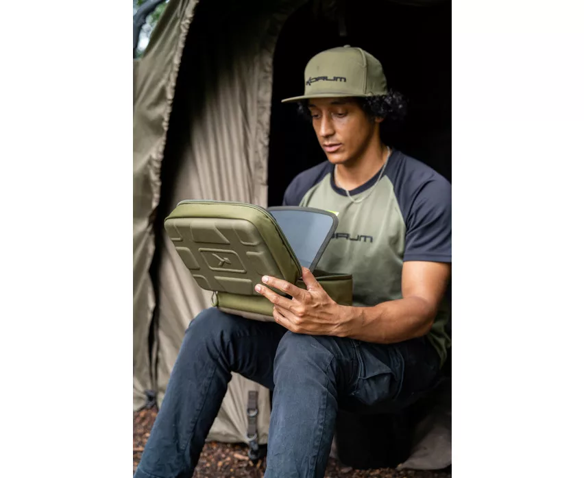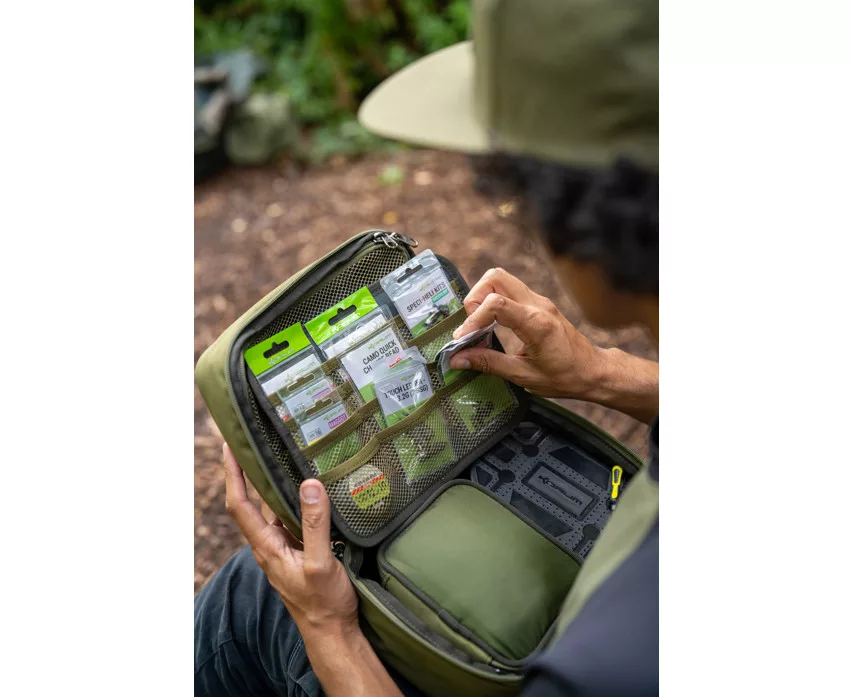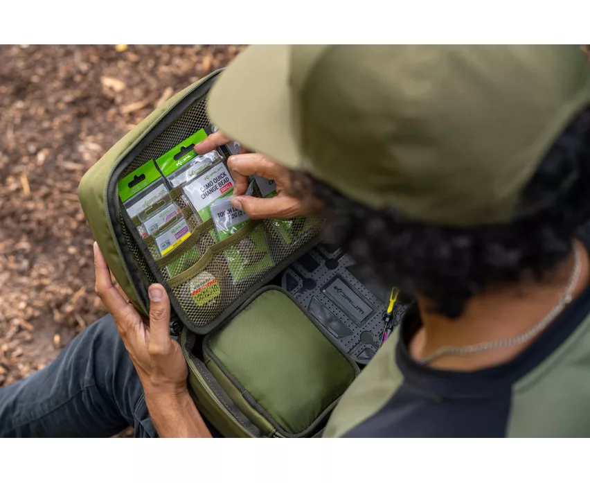 Superorganizirano rješenje za spremanje kutija za pribor i tradicionalnih torbi za pribor. Sadrži pregradu s brojnim džepovima za sigurno i pažljivo odlaganje udica i elemenata završnog pribora. Izrađen je s čvrstim EVA oblikovanim poklopcem i bazom, te savršeno odgovara veličini Tackle Blox kutija i dodataka.