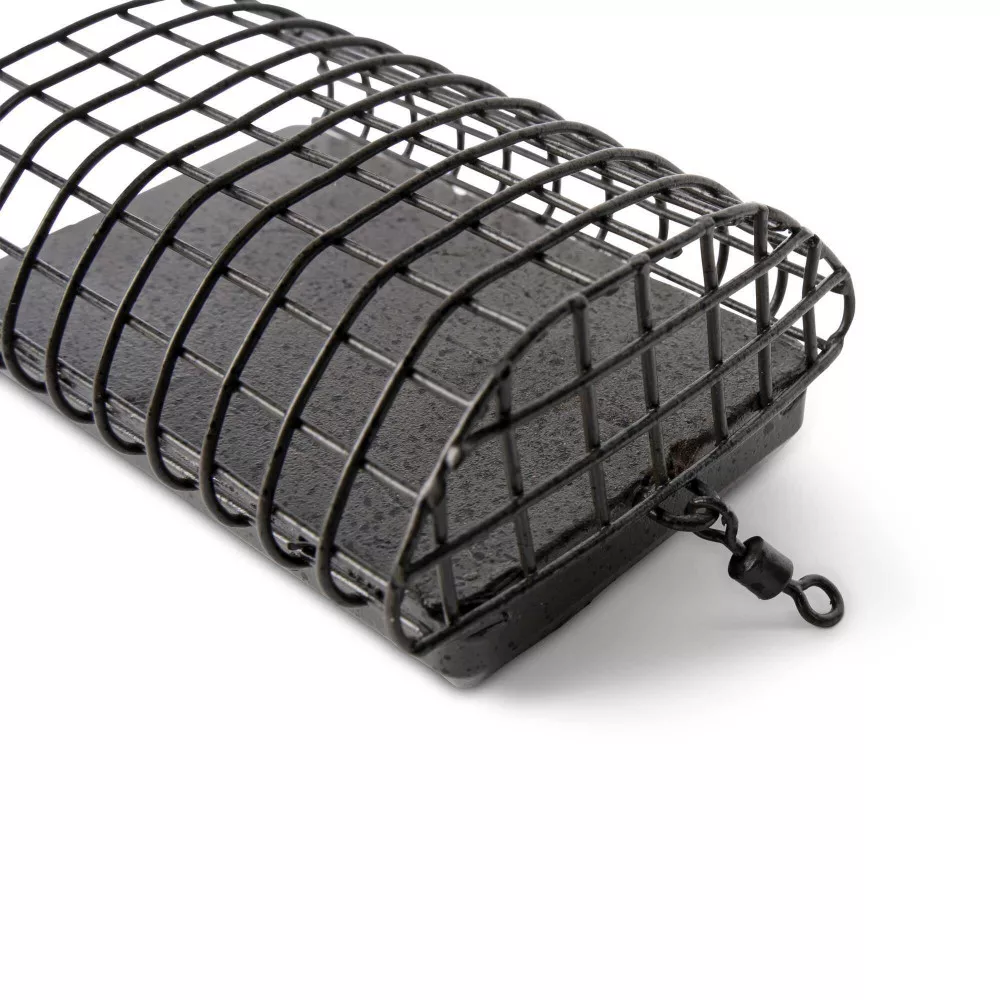 Košara je izrađena od jake, pocinčane čelične mreže koja osigurava dug vijek trajanja i otpornost na hrđu. Pocinčani premaz štiti košaru od korozije, čime se produljuje njezina upotreba čak i u teškim uvjetima. Utegnuto dno hranilice izrađeno je od legure metala bez olova, koja je ekološki prihvatljiva i u skladu je s modernim ribolovnim propisima. Pravilno postavljanje utega osigurava stabilnost košare u vodi. Pričvrsni elementi i spojnice košare izrađeni su od nehrđajućeg čelika, koji su jaki i izdržljivi, osiguravajući pouzdano pričvršćivanje košare na strunu.