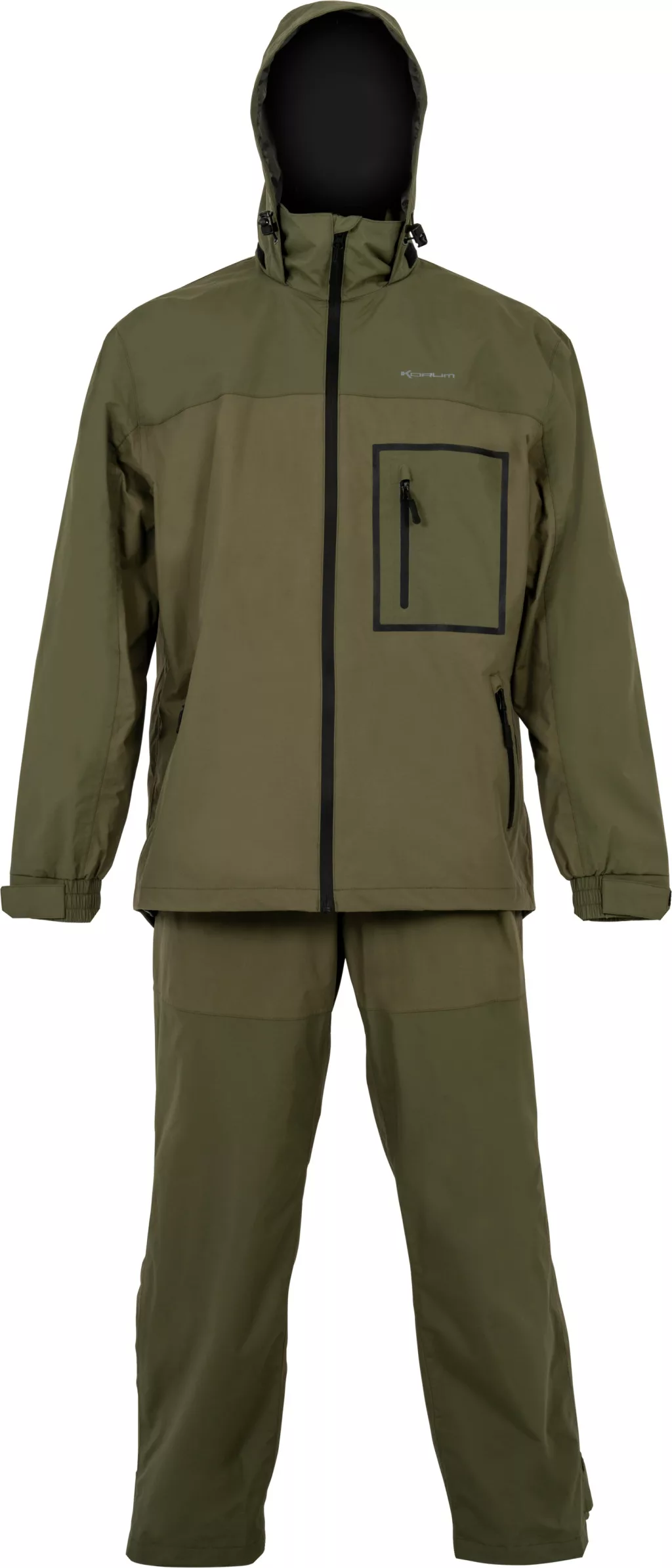 Korum Superseal Waterproof Suit je komplet odjeće za kišu posebno dizajniran za potrebe ribolovaca. Pruža pouzdanu zaštitu od promjenjivih vremenskih uvjeta, tako da svog nositelja može održati suhim i udobnim tijekom dugih, aktivnih ribolova. Komplet se sastoji od dva dijela: vodootporne jakne i Bib&Brace hlača s naramenicama, koje zajedno pružaju potpunu zaštitu od kiše, vjetra i hladnoće.