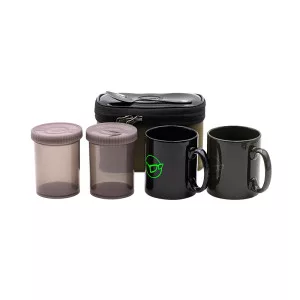 Svaki set također uključuje dvije plastične posude s poklopcem na navoj s Korda logom, namijenjene za pohranu kave, vrećica čaja i šećera.