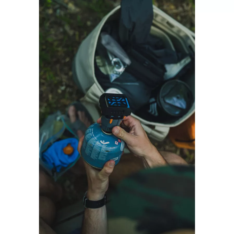 Aktivnu tvar isparava u zrak iz pločice, kompaktan dizajn visok samo 97 mm mala težina – samo 114 grama. Učinkovita potrošnja plina: 220 grama kamperska plinska boca = 160 sati rada – (plinska boca nije uključena)