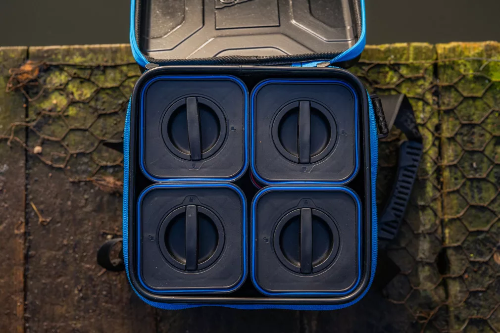 Četiri spremnika, svaki od 1,6 litara (2,8 pinte), uključena uz torbu, idealna su za skladištenje raznih mamaca. Spremnici se mogu zasebno zatvarati, tako da su mamci sigurni i ne miješaju se. Torba je pogodna ne samo za skladištenje mamaca, već i za organizirano skladištenje ostale ribolovne opreme, dodataka i sitnijih alata.