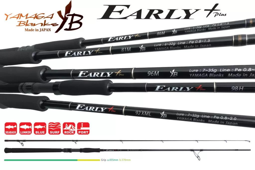 Model Early+ 98H može pokriti situacije u kojima koristite veliki mamac, metalni jig ili top plug kao veći mamac za Blue Runner-a. Ovo je najsnažniji model serije Early+, koji omogućuje ribolovcima da izvuku većeg brancina iz tetrapoda, ili se čak bore s Blue Runner-om težine oko 5 kg.